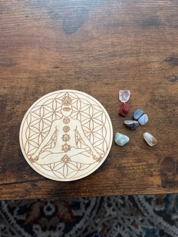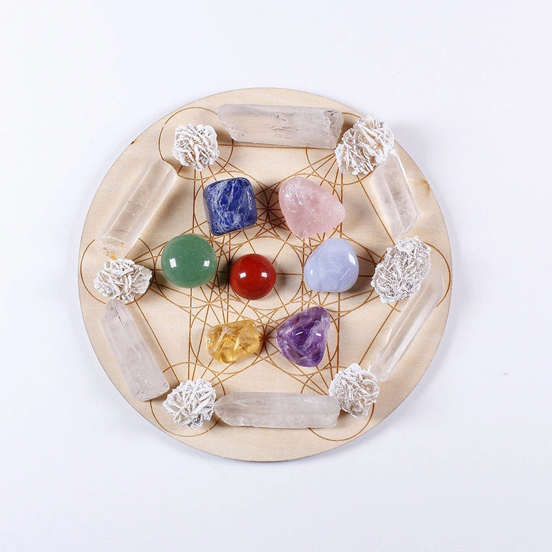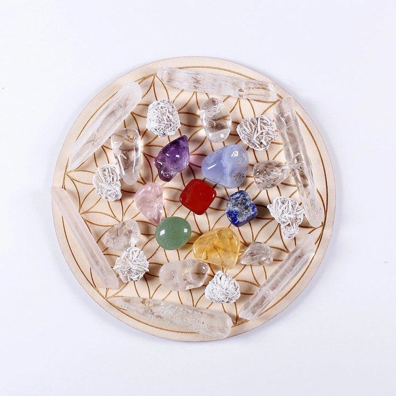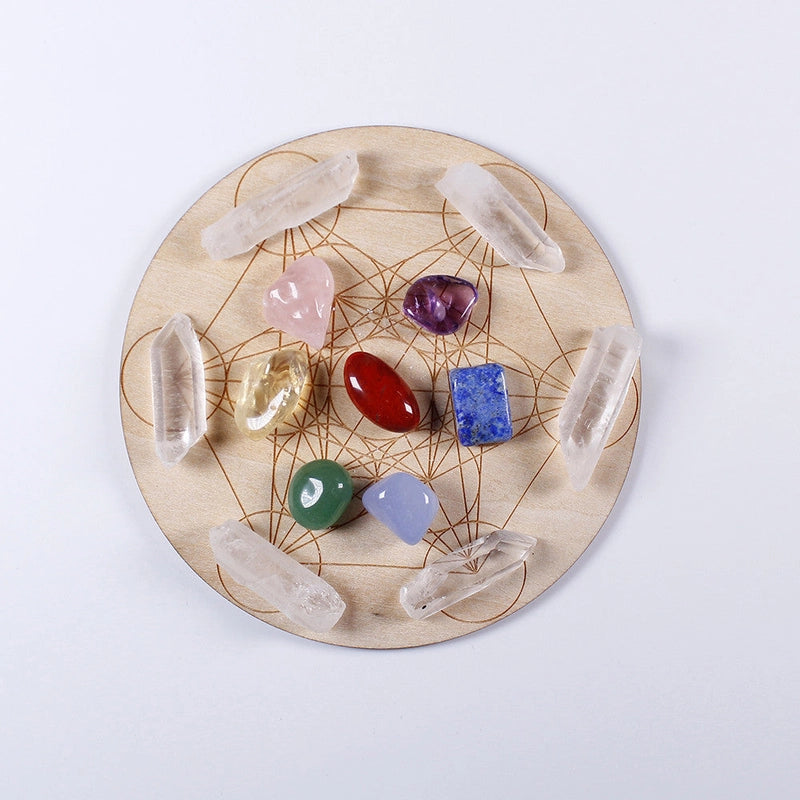 Each crystal corresponds to a specific chakra, gently aligning your energy centers. Placing the plate in your space acts like a magnet for peace, helping you feel more grounded, focused, and vibrantly alive every single day.